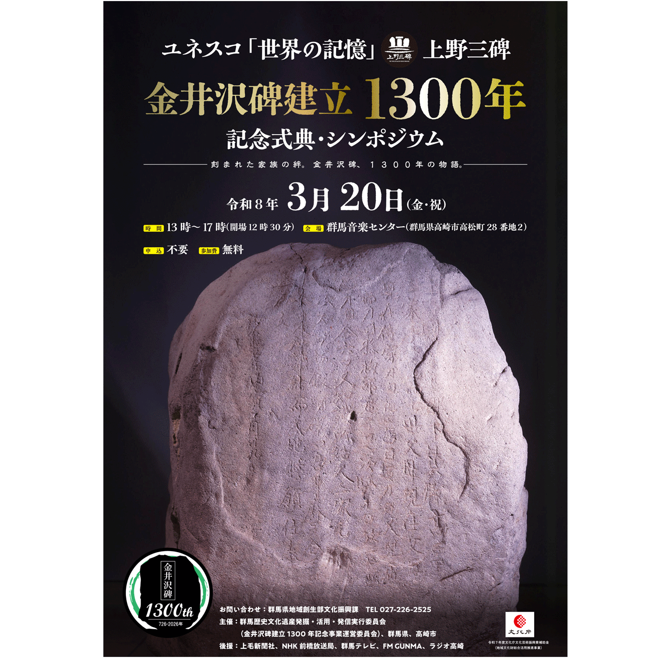 ユネスコ「世界の記憶」上野三碑 金井沢碑建立1300年記念式典・シンポジウム(群馬音楽センター/高崎市)