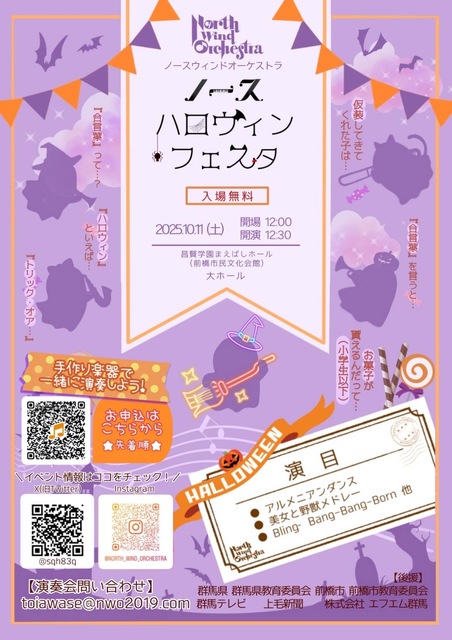 前橋市を拠点に活動している一般吹奏楽団 North Wind Orchestra-ノースウィンドオーケストラ-です!…