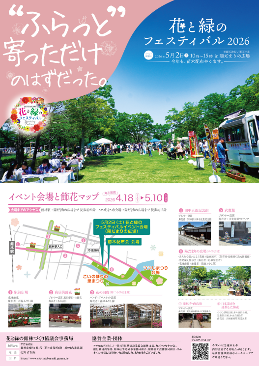 花と緑の館林づくり協議会では、市民の皆さんと一緒になって、花と緑の豊かなまちづくりを推進するため、「花と緑のフェスティバル2026」を開催します。