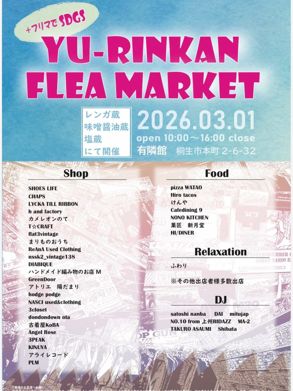 有鄰館の蔵を使ってフリーマーケット開催します! 古着から家庭用品まで様々なジャンルが出店してくれます! お宝品があ…