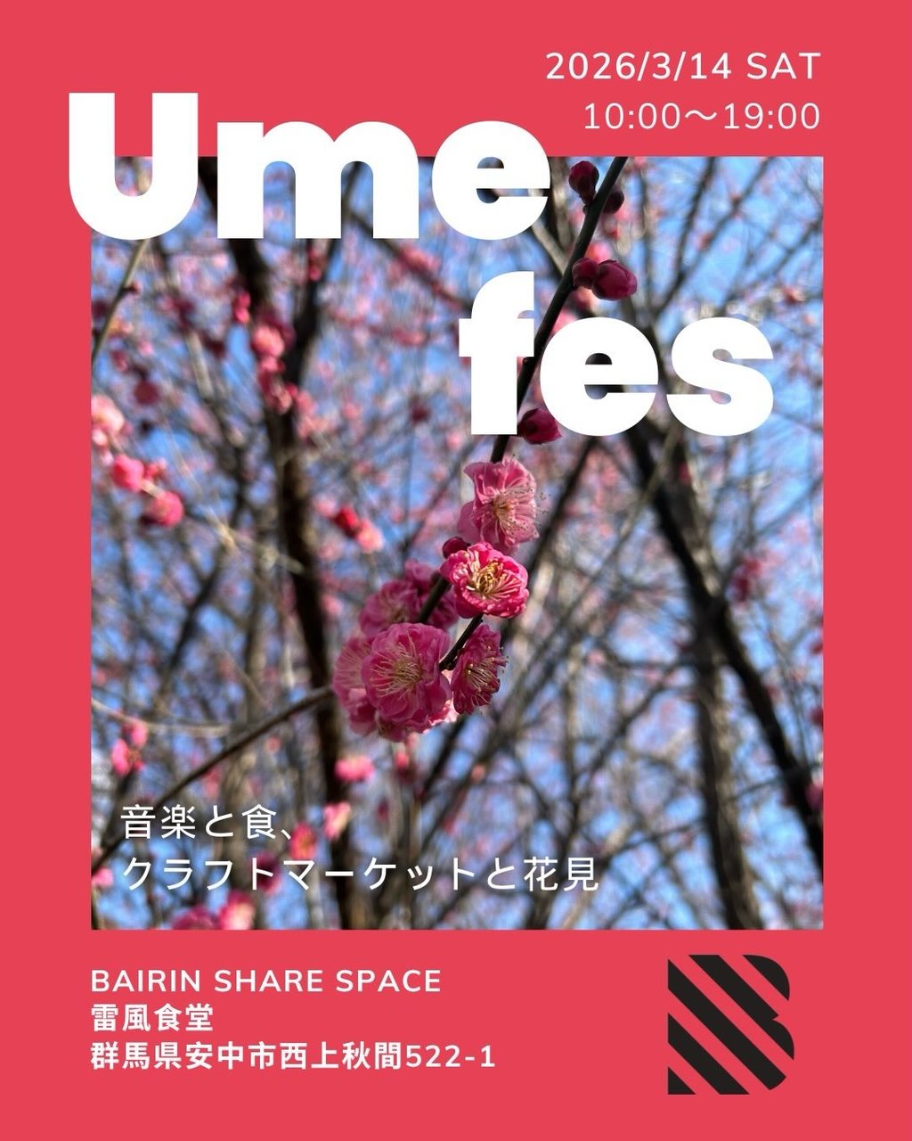 Ume Fes 音楽、食、クラフトマーケットと花見 3/14(土)10:00-19:00 Bairin Share …