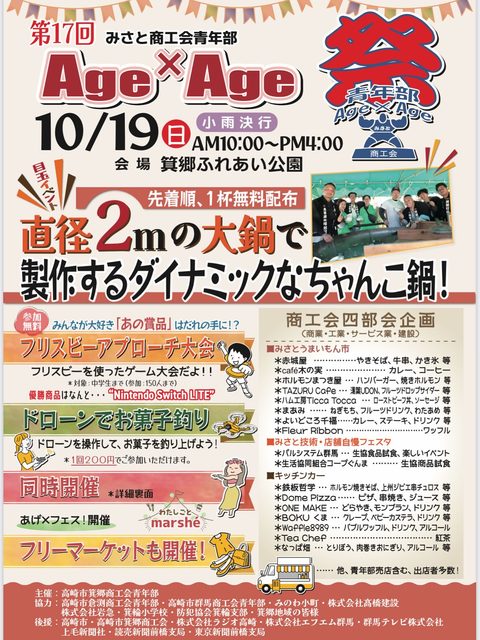 ふれあい公園を会場に、高崎市箕郷商工会青年部が主催するイベントです。Age×Age(アゲアゲ)とは、英語で年齢・世代を…