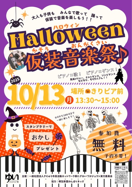 桐生駅前のにぎわい創出を目的に、仮装姿で音楽を楽しむ「ハロウィン仮装音楽祭」を開催します。
