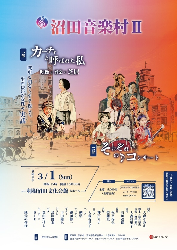 【公演内容】 ◆第一部「カーチャと呼ばれた私」朗読映像と芝居と生劇伴 舞台は第二次世界大戦中から戦後にかけての満州。逞…