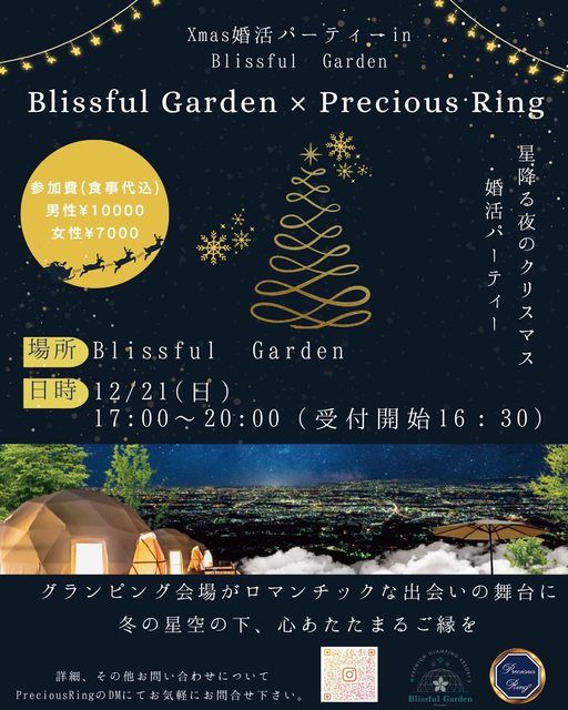 独身の方向けの「Xmas婚活パーティー」を開催! 星降る夜のクリスマス婚活パーティー。 グランピング会場がロマンチッ…