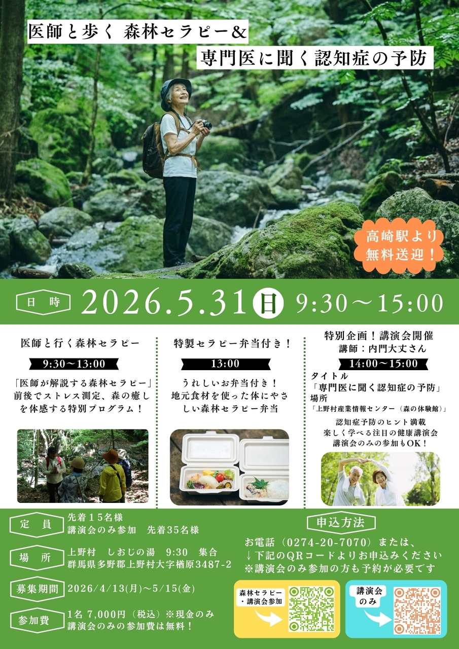 医学的エビデンスに基づいた森林セラピー体験と認知症予防講演会を組み合わせた特別企画「医師と歩く森林セラピー&専門医に聞…