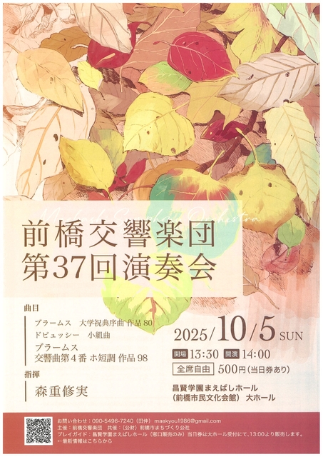 指揮:森重修実 曲目 ブラームス 大学祝典序曲 作品80 ドビュッシー 小組曲 ブラームス 交響曲第4番 ホ短調…