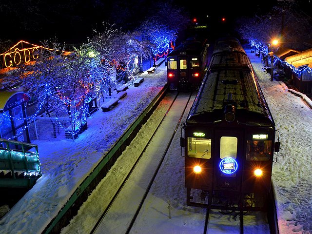 暖房完備のトロッコ列車で、イタリア料理の名店「リストランテ チイニョ」の本格イタリア料理とイルミネーションをお楽しみい…