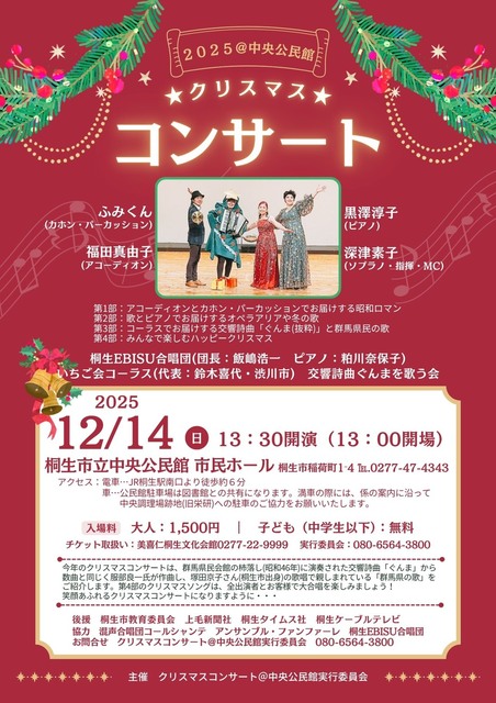 クリスマスコンサート2025@中央公民館(桐生市立中央公民館/桐生市)