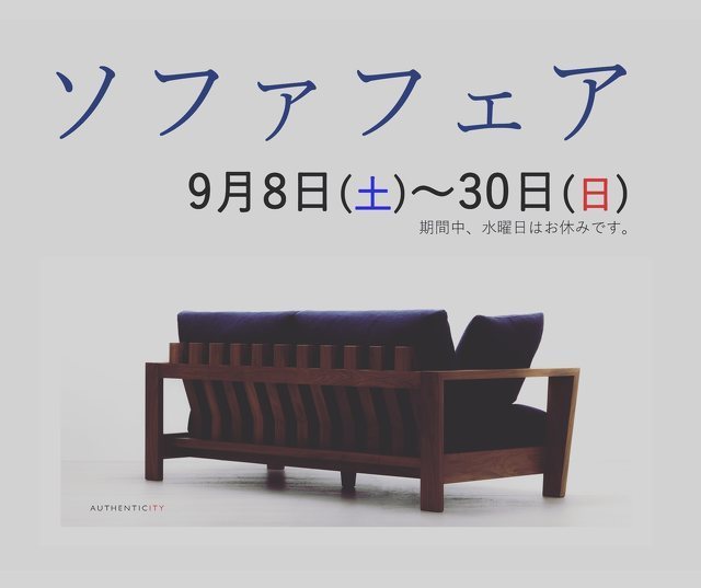 9/8(土)~30(日) 『ソファフェア』開催! 記録的な猛暑となった平成最後の夏☀️ 暑さで疲れた身体に『癒やしの…
