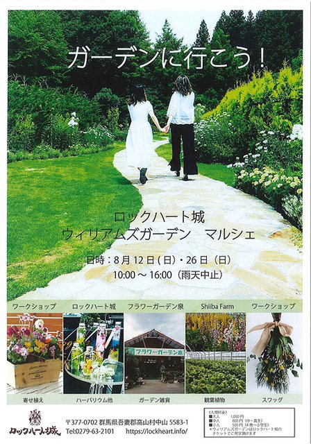 ロックハート城内「ウィリアムズガーデン」内でマルシェを開催いたします。 【日程】 2018年8月12日(日)・26日…