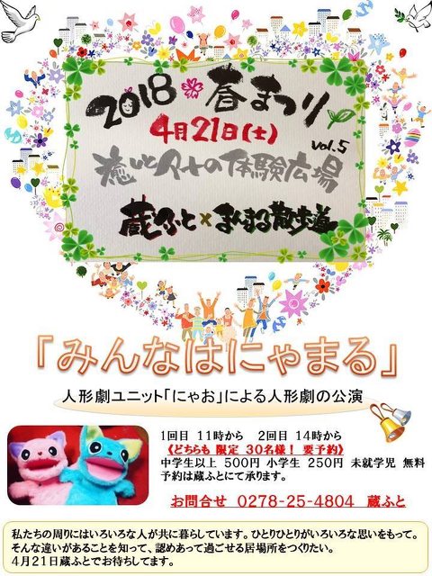 誰もが楽しめる人形劇の公演のほか楽しい企画がたくさんあります。 小さなお子さんからどなたでも参加していただけます。