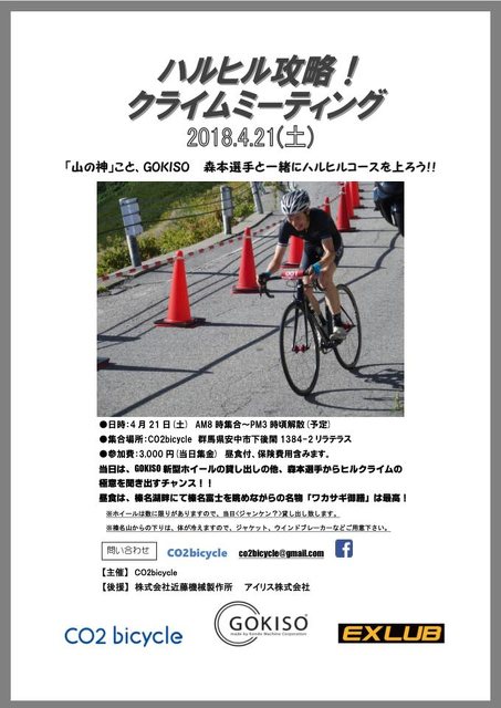 ハルヒル(第6回 榛名山ヒルクライム in 高崎)を1ヶ月前に控えた4/21(土)、「山の神」ことGOKISOの森本 …