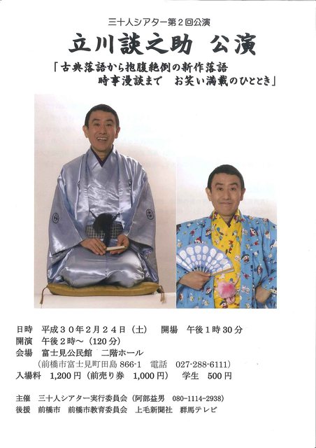 「古典落語から捧腹絶倒の新作落語 時事漫談まで お笑い満載のひととき」 立川談之助師匠は、前橋市出身の落語家で…
