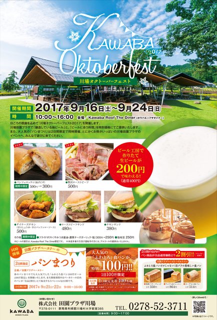 日頃の感謝をこめて、「川場オクトーバーフェスト2017」を開催! 道の駅川場田園プラザにて醸造している「地ビール」と「…