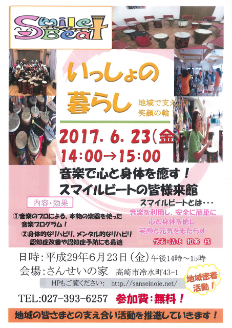 音楽で心と身体を癒やす!スマイルビートの皆様来館 【スマイルビートとは・・・】 音楽を利用し、安全に簡単に心と身体を…