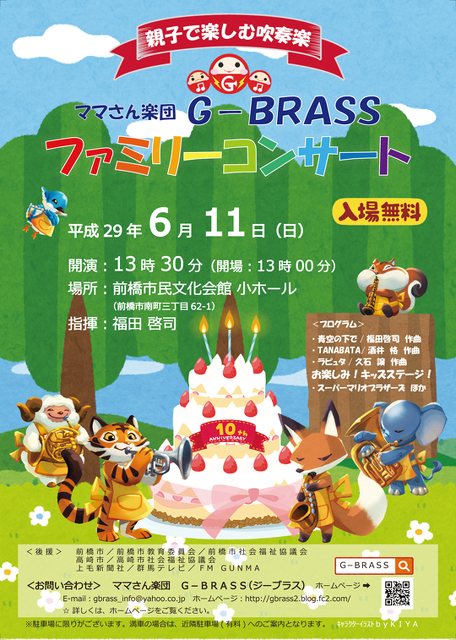 ママさん楽団G-BRASSは、県内各地から”上州名物かかあ天下”のママ達が集まり、子ども達と一緒に楽しく活動している吹…