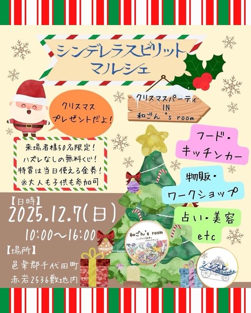 邑楽郡千代田町にある 和ごんs’room様 にて シンデレラスピリット クリスマスマルシェ開催! 「親子で楽しめるあ…