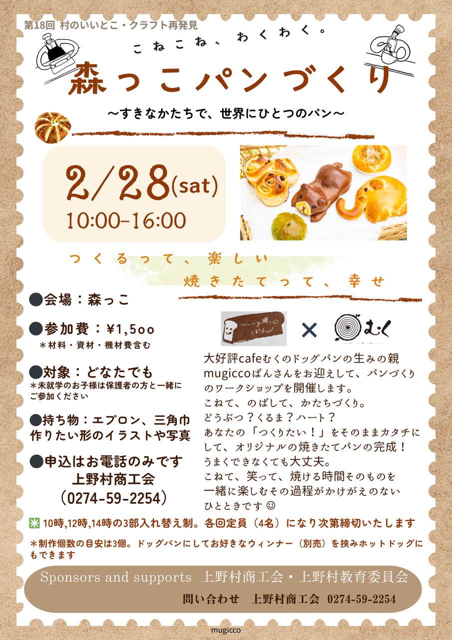 大好評cafeむくのドッグパンの生みの親mugiccoぱんさんをお迎えして、パンづくりのワークショップを開催します。 …