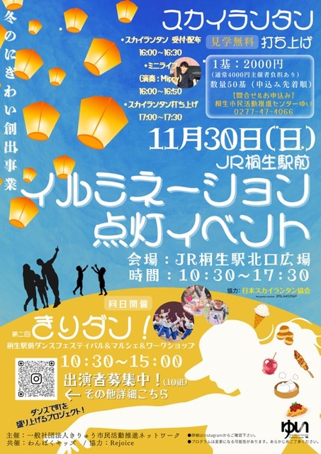 今年も桐生駅イルミネーション点灯イベントを開催します! ■10:30〜15:30 「きりダン!〜桐生駅前ダンスフェス…