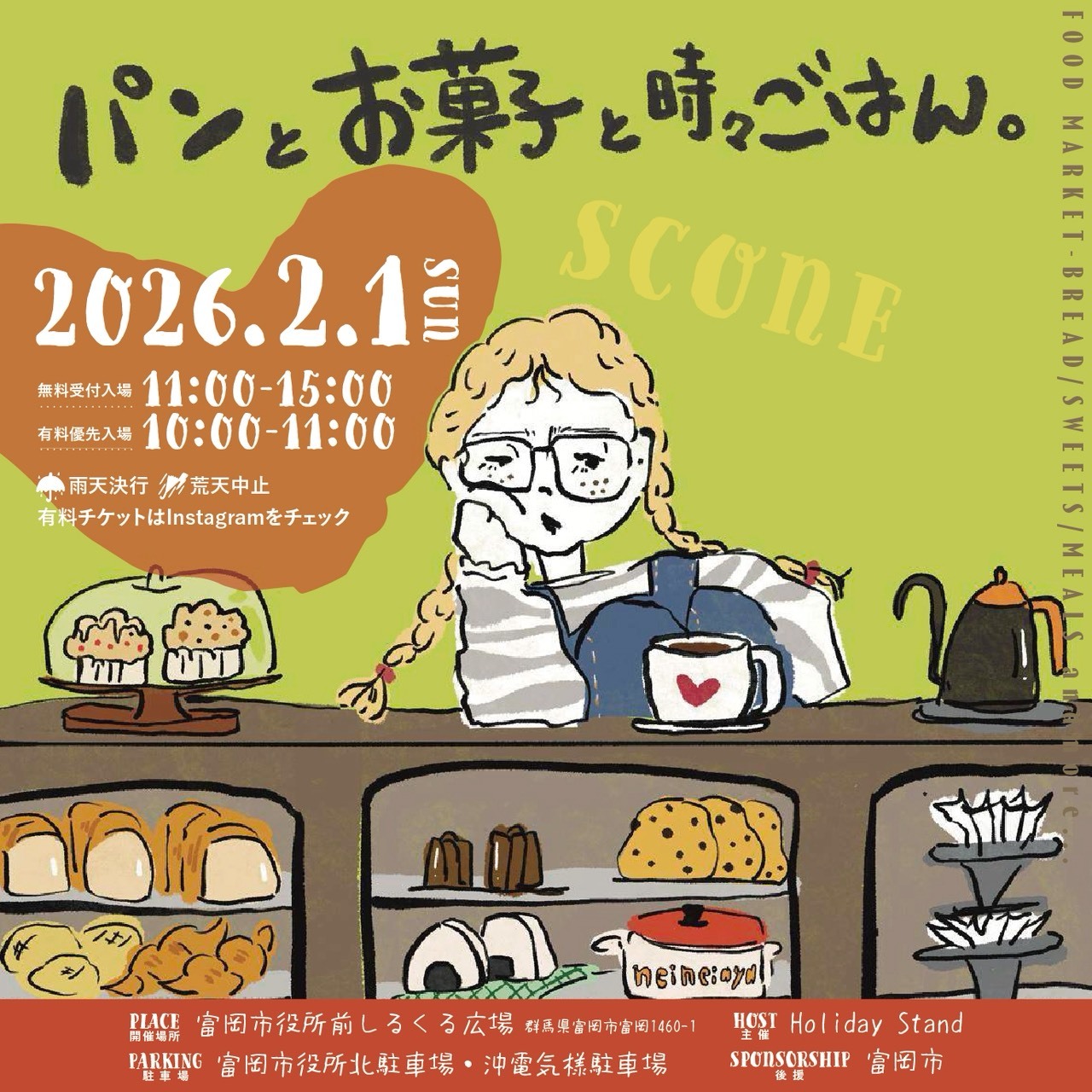 パンとお菓子が主役のフードイベント パンとお菓子と時々ごはん。 2026年2月1日(日)に群馬県富岡市のしるくるひろば…