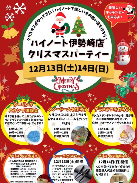 ハイノート伊勢崎店で12/13(土)14(日)にクリスマスパーティーを開催! 大人気スノードームやグラスデコの制作…