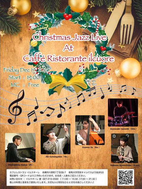 2025年 12/19(金)19:00 〜 前橋市のイタリア料理店 ilcuore にて、群馬大学の学生を中心に、無料…