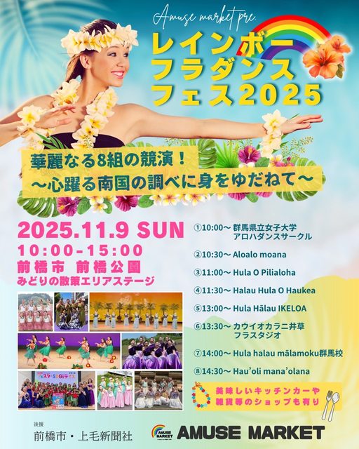 華麗なる8組の競演! 心躍る南国の調べに身をゆだねて、ひとときのハワイアン気分をお楽しみ下さい。 美味しいキッチンカ…