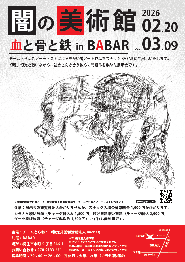 桐生市のアート特化型障害者支援施設「チームとらねこ」による、障がい者アートの認知向上、夜の市街地の活性化を図る、作品展…