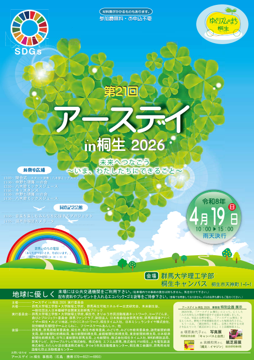 「アースデイ in 桐生」は、大学と高校、企業、市民団体、行政などが協力して開催している春の環境イベントです。 今年は…
