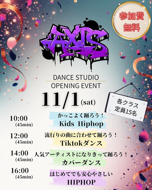2025年11月1日ダンススタジオ「AXIS」が渋川市八木原にオープン! ストリートダンスの他にヨガ、ピラティス、Z…