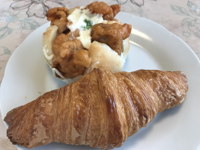 国道354号線からのぼりが見え気になっていたのですが、ようやく伺えました。一押しのクロワッサンとから揚げパンをチョイス。クロワッサンはふわふわでバターの風味が豊かですね。から揚げパンは、しっとり柔らかなパンとボリュームあるから揚げが美味しいです!ごちそうさまでした♪
