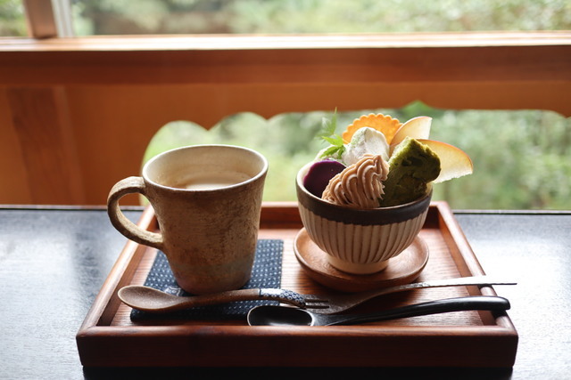 投稿:2021/10/20 掲載:2021/10/20 季節限定の栗パフェです。ドリンクつけて1050円。ホットのキャラメルミルクにしました。 栗アイスにバニラアイス、抹茶シフォンケーキものっていて、和のパフェでおいしかったです。店内からながめる木々に癒されます。 一路堂CAFE 高崎市お食事処 このクチコミに“ぐっ”ときた 4