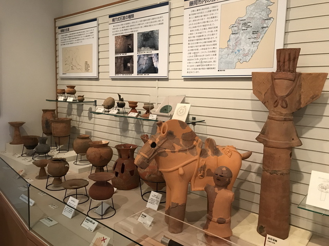 ぐんラボアプリで「七輿山古墳」や「ドライブイン七輿」から近いとは知っていたのですが、初めて訪ねました。歴史館というだけって、古墳の出土品だけでなく、縄文から近代まで藤岡の歴史が広くカバーされていますね。「笑う埴輪」は撮影OKでした。堀越二郎さんの紹介や零戦の模型(撮影不可)も。隣には小さな古墳の並ぶ公園があり、駐車場も広くてお勧めです!