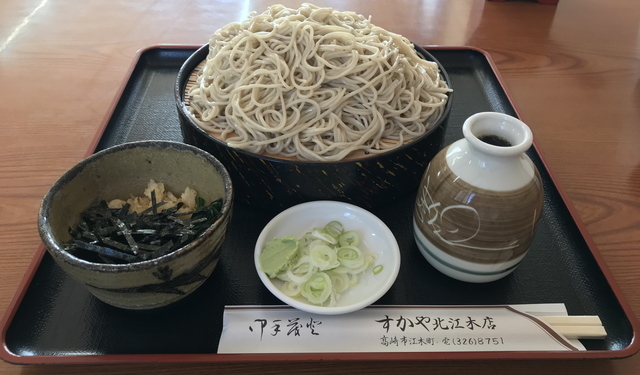 定番「たぬきせいろそば」を、前回教えて頂いた温かいつゆで。持てないぐらいアツアツの徳利でつゆが登場。つゆ用の器に入っている揚げ玉が溶けていつもと違う味わいに。これはこれで美味しいですね♬ 徳利の湯気は写りませんが麺の大盛感(たぬきせいろが大盛がデフォルト!)は伝わるでしょうか。