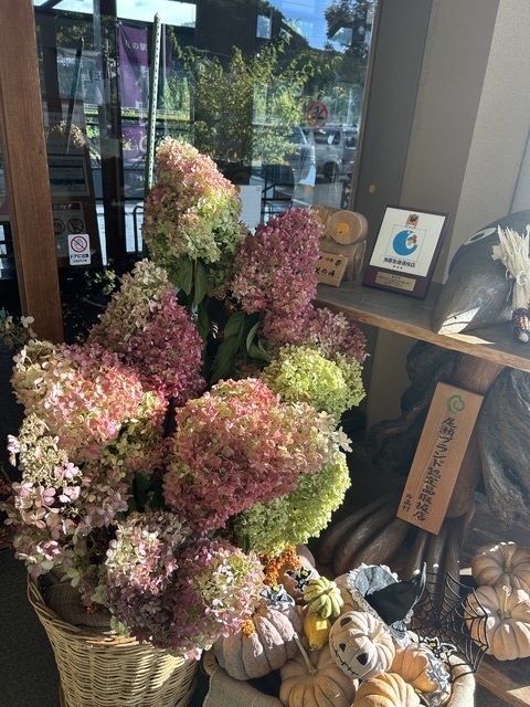 こちらには新鮮な野菜がたくさん売っています。大きなピーマンやドライトマトなど買いました。 帰りには花豆のソフトクリームを買いました。
