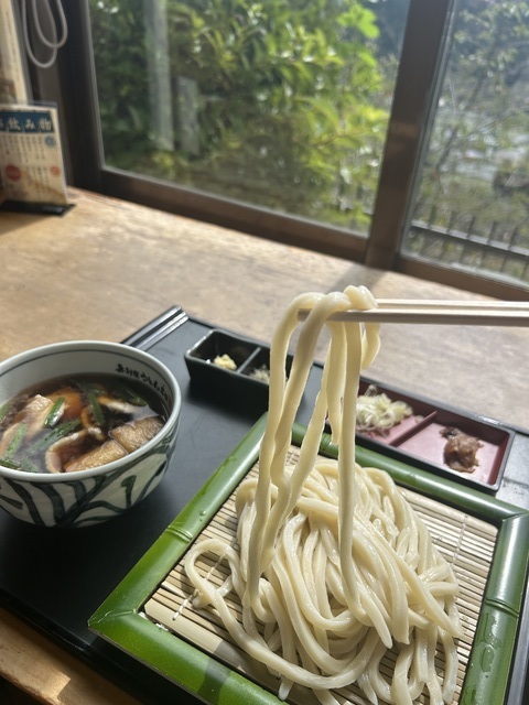 120号沿いにあるこちらのお店は駐車場もひろく入りやすいです。 ランチは平日がおすすめです。今日は鴨汁うどんと肉汁うどんを食べました。食後は河岸段丘をみながらコーヒーで乾杯しました。