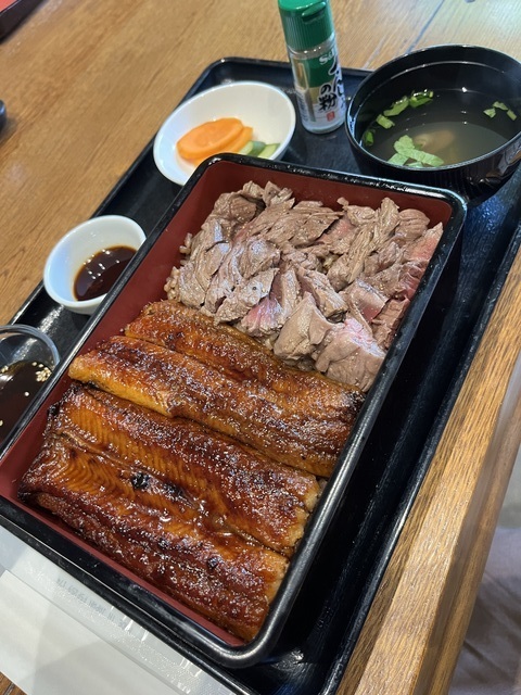 メニューが豊富で、洋食、和食、色々あって目移りします。タッチパネルでの注文で、注文の仕方や説明も丁寧にして下さいます。今回は前から気になっていた、鰻と牛ハラミの合い盛りをいただきました。自社で赤城山麓で養殖している鰻だそうです。少し小骨はありますが、臭みもなく美味しい鰻でした。牛ハラミと両方食べられるところが良いです。ここは、ご飯を白米か酵素玄米か選べるところが気に入っています。健康を意識している人には嬉しいですね。私は酵素玄米にしました。ササゲかな?小豆かな?も入っていました。美味しかったです。これで3000以内ならお安いと思います。