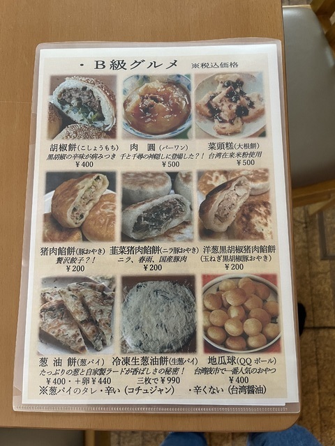 点心が食べたくなって、ランチ営業しているのか電話したところ、今はランチなどのお料理担当のお母様が引退されたので、娘さん担当の点心類のテイクアウトのみされてるそうです。台湾に行った際には胡椒餅を食べようと思っていたけれど、食べたことがなかったので胡椒餅をテイクアウトしました。これが絶品で、肉まんやあんまんはよくあるけれど、胡椒餅ってなかなかないので、またリピしたいです。ほんとに胡椒がピリリときいていて、お肉やネギが入っていて、生地はパイ生地のようなサクッとした皮に中はフワッとしていて、食べ応えもあり、絶対美味しいので、是非、テイクアウトして食べてみて下さい。温める場合は10分くらい必要なので、電話してから行くと待たなくて良いと思います。