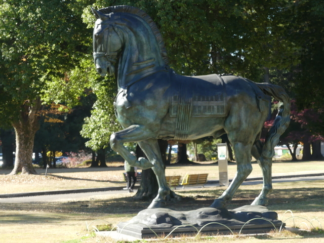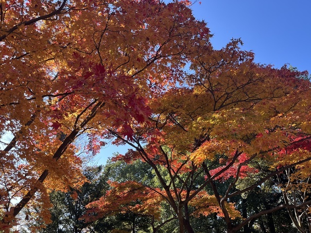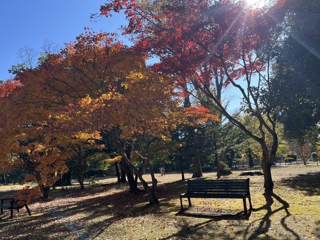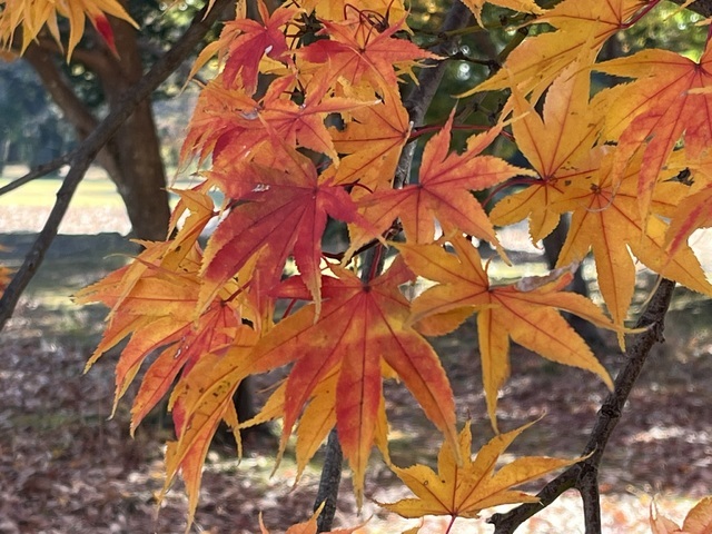 知人がはじめて県展に出展し、見学に行ってきました。公園内の紅葉に癒されました。紅葉の下のベンチに座り、時間の経過を忘れそうでした。気持ちいい公園散策でした。