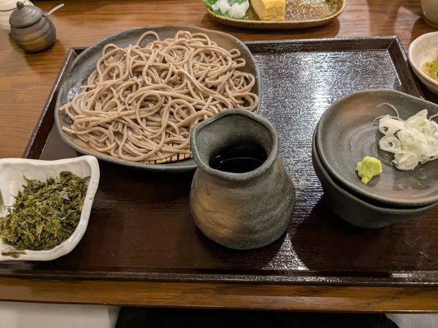 海苔のっける十割蕎麦、だし巻き卵の、ハーフにしました。しっかりタイプの蕎麦です。だしは優しい味。濃い蕎麦湯足すとめちゃ美味しかったです。巾の広い蕎麦も食べたいので、次回食べようと思います。