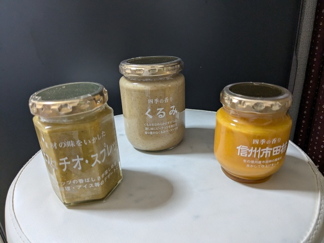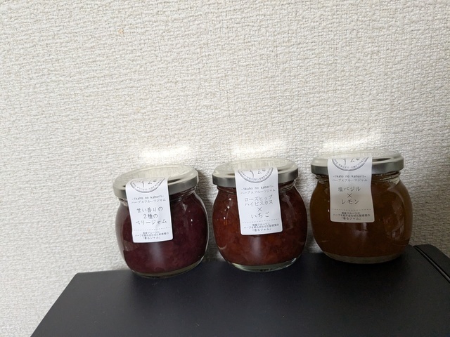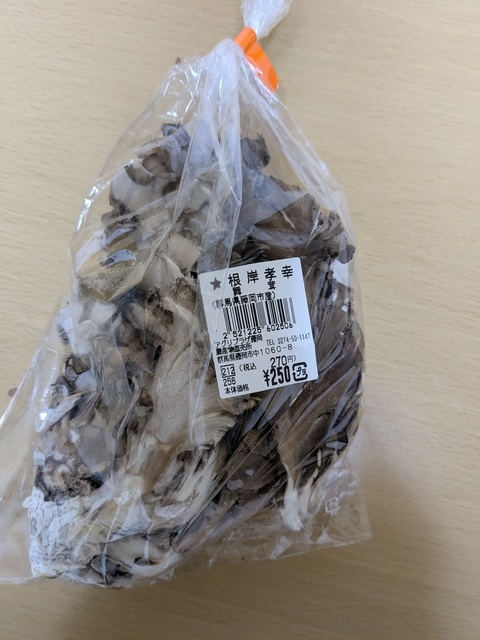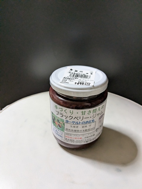 舞茸目的です。この舞茸、味が濃くて美味しいんです。そして、ジャム。ヨーグルト用でジャムとソースの中間のとろみ。昼前に行ったら野菜はもうほとんどなかったです。