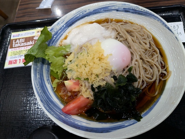 温玉に惹かれこの蕎麦にしました。蕎麦に絡めると、最高でした。大根の千切りが、大量に乗った蕎麦もあり迷いましたー。安いのに、蕎麦も美味しい、つゆも美味しい。