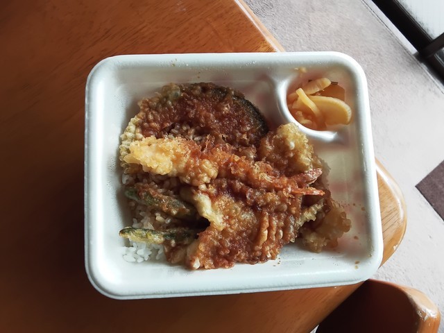 こちらのお店は初めてで、テイクアウトをお願いしました。てんやの天丼弁当690円です。海老、キス、いか、カボチャ、インゲンが具材です。タレがしょっぱくなくて美味しいです。天丼はほんとに久しぶりにいただいてまた次回は、別なメニューを食べたいです。