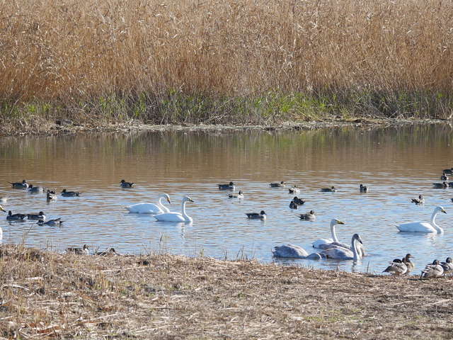 昨年12月オオハクチョウがやってきていると聞いて様子を見に行きました。ガバ沼にはオオハクチョウ、オナガガモがいました。すでに朝の餌をもらった後なのでのんびりしているようでした。ほかのハクチョウはすでにあちこち遊びに出かけているようでした。
