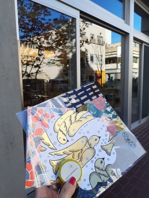 オープンのニュースを聞いてはいましたが、ついに入店できました!もう店内商品どれもが芸術品。職人の技術を生かしたテキスタイルが目の前に…美術館にいるかのような気分になりました。桐生市の工場で制作されたという素晴らしく美しいテキスタイルのエッグバッグもあり、群馬県民として誇らしい気持ちに。「余り布も大切な素材」として、ハギレセットが販売されており、購入しました。ハギレ合わせがアートになるのがさすがミナペルホネンです。額装して飾ります!