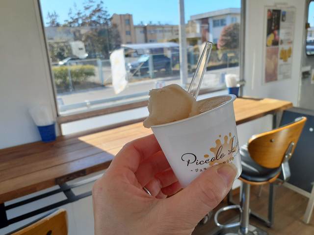 2025年夏にオープンしたのを知ってはいつつ、伺う機会に恵まれず・・ついに行けました!トレーラーハウスの店舗はとっても素敵な外観!非日常感たっぷりで気分があがる♪渋川市の有名な見城農園の洋なしをつかった「洋なしコミス」のジェラートをいただきました。洋なしそのものを食べているかのようなジューシーさに驚きました。こんなにみずみずしさを感じるジェラート、初めて!他の果物ジェラートも全部食べた~い!