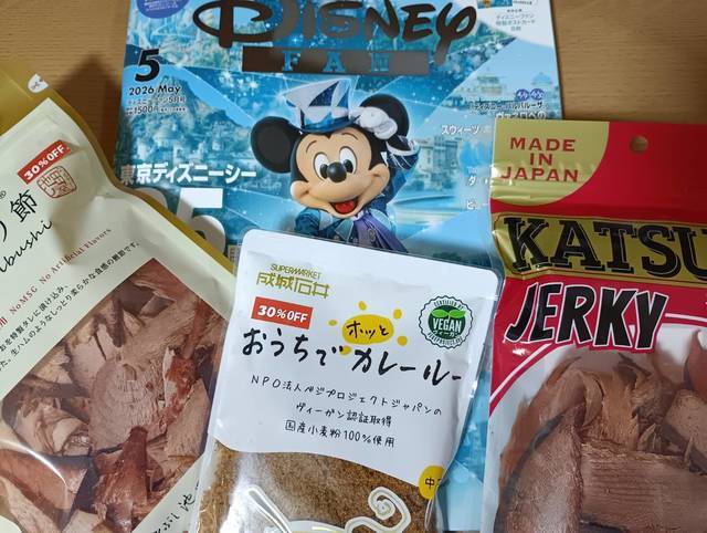 先日、こちらで予約していた「ディズニーファン5月号」を受け取りに行きました!今回は特別号で1,500円と通常よりお高くなっていましたが、盛りだくさんの内容で大満足♪娘と一緒に読める雑誌なので、とても気に入っています!今回は雑誌と一緒に、成城石井の食品コーナーのカレー粉、鰹のお菓子などを購入しました!カレー粉は家族のお気に入りで、こちらのカレー粉で作ったカレーはあっという間に完食してしまいます!値下げされていた品を見つけてラッキーでした♪