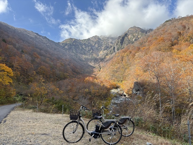 駐車場¥500!紅葉シーズンは9月下旬~なので終わりかと思いきや全然でした。水上の山はどこを見渡しても紅葉紅葉!オレンジがメインです!しかも、レンタサイクル最終日はなんと明日11/9までという事で、タートルニット、ダウンジャケット、冬用手袋を着用したが、日差しが暖かくて心地良いし、想定よりも寒く無くて最高でした。ロープウェイ、レンタサイクルともに秋の思い出として深く刻まれました。