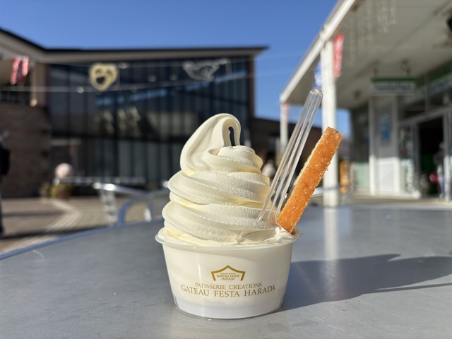 ハラダのラスクは全国の至る所で買えるが、ソフトクリームはここでしか食べられないし、しかも!なんと営業が本日まで!ギリギリセーフ。ソフトクリーム・デ・ロワ(ミルク)¥550 洋菓子店のソフトクリームは大したことないかなと思いきや、意外と濃いしクオリティ高い!!量が多く、底にあるサクサクのザラメみたいなやつがアクセントで美味しかった。念願のアイスを食べられて良かった。